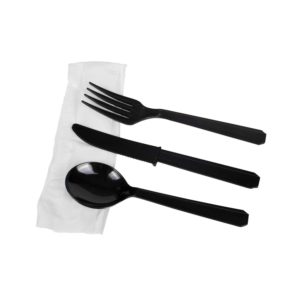 Plastic Knife/Spoon/Fork/Napkin 4pcs Kit Heavy Duty (black) (U2200B)